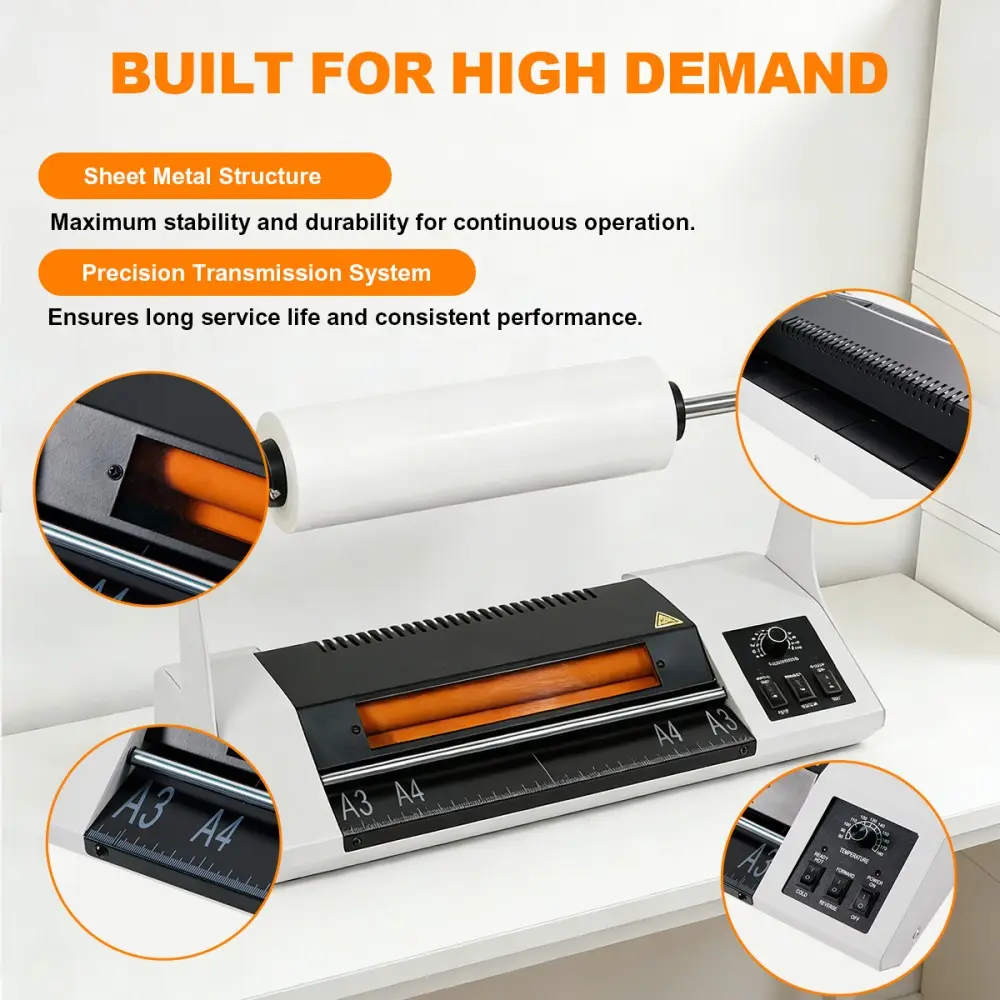 The 2-in-1 Roll Laminating Machine is a versatile solution designed for A3, A4 paper laminating. With a maximum laminating width of 330mm, it is ideal for documents, photos, menus, labels, and packaging applications.